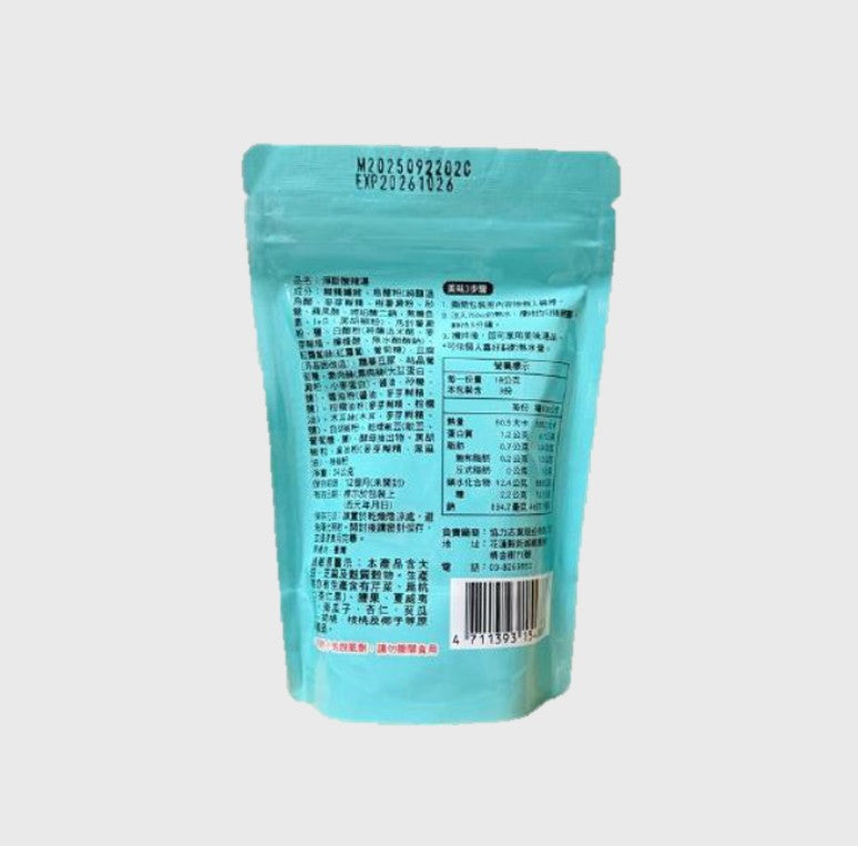 過敏原警示: 本產品含大豆、芝麻及麩質穀物。生產線亦有生產含有芹菜、扁桃仁(杏仁果)、腰果、夏威夷豆、南瓜子、杏仁、葵瓜子、胡桃、核桃及椰子等原料產品。